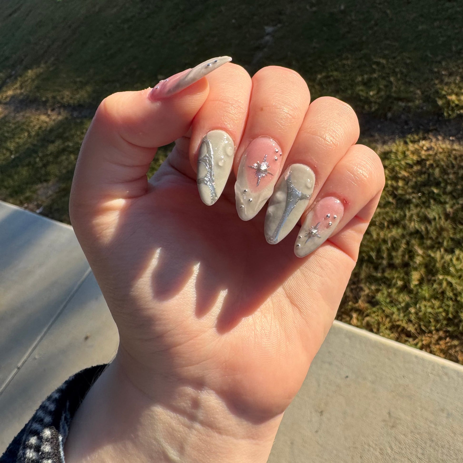 Place a piece of clear tape across the top of your nail and draw a line with your pen on the crease on both sides of your nail. Make sure you find the widest part of your nail to make your markings. Then take the tape and place it on the centimeter ruler. Count the number of lines on the ruler from one marking to the next (don’t worry about the actual numbers showing on the ruler). This will give you the millimeter measurement you need to reference with the finger chart above.